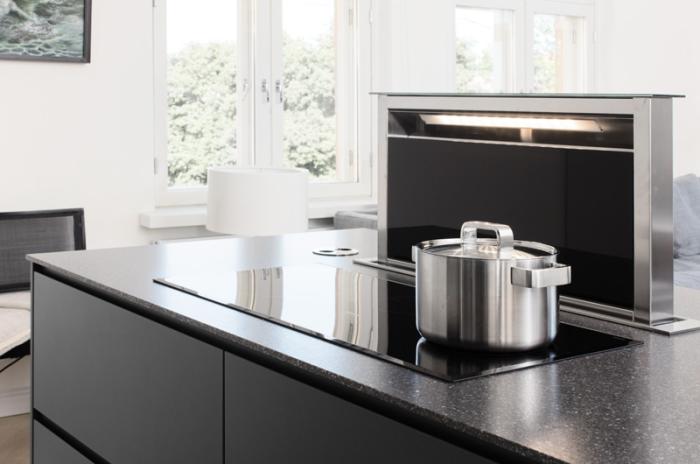 Island Frost Hiili, molding Frost charcoalCountertop Silestone Platinum Zirconium matte